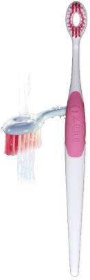 Rinsing through the back of the OZONE head removes food debris and excessive toothpaste.